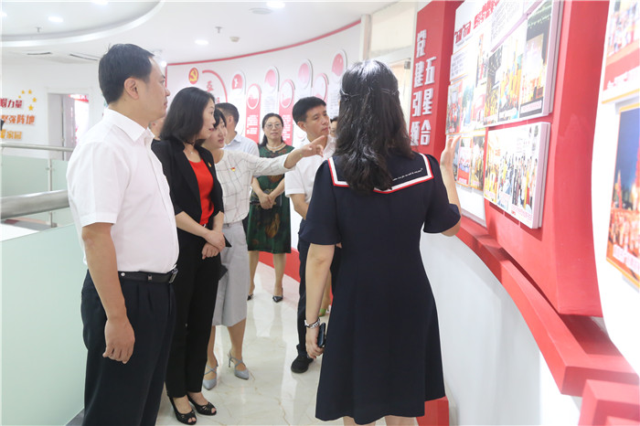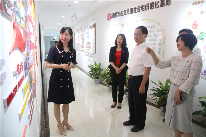 在二楼中心党建园地和巾帼公益园,严允一行详细了解妇联、中心党建工作情况和女性社会组织孵化培育工作,并指出妇联要充当好党和政府联系和服务妇儿家庭的桥梁纽带,为广大妇女多做实事,为推动南昌高质量发展贡献半边天力量。