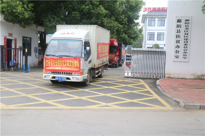 一方有难,八方支援!上午11:30分,连夜从河南出发的抗洪救灾爱心转车装载着10万元爱心生活物资(607袋大米,607桶食用油)先行抵达鄱阳县扶贫办,车上醒目的红色横幅搭载着生活的新希望,给灾区人民带来了振奋人心的力量。