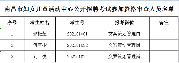 2021年南昌市妇女儿童活动中心公开招聘资格审查人员名单公示