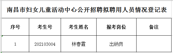 拟聘用人员名单如下:南昌市妇女儿童活动中心公开招聘拟聘用人员名单。