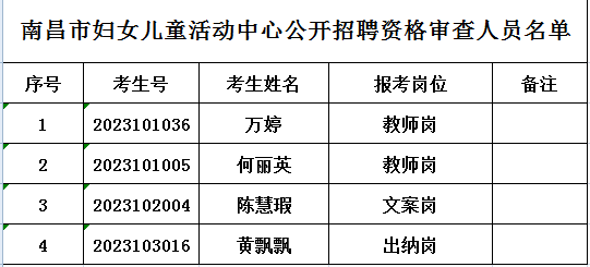 2023年南昌市妇女儿童活动中心第一批公开招聘资格审查人员名单公示