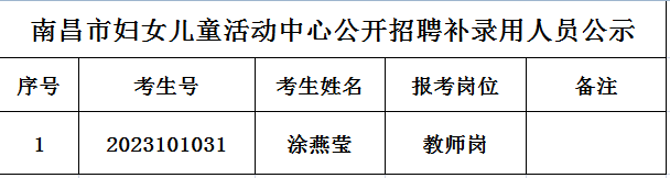 2023年南昌市妇女儿童活动中心公开招聘补录用人员公示