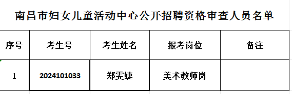 2024年南昌市妇女儿童活动中心公开招聘资格审查人员名单公示