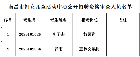 2025年南昌市妇女儿童活动中心公开招聘资格审查人员名单公示