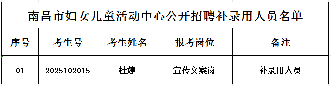 2025年南昌市妇女儿童活动中心公开招聘补录用人员公示