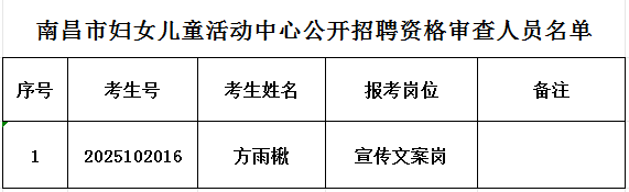 2025年南昌市妇女儿童活动中心公开招聘资格审查人员名单公示