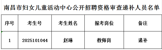 2025年南昌市妇女儿童活动中心公开招聘资格审查递补人员名单公示
