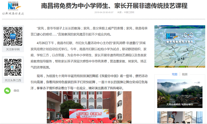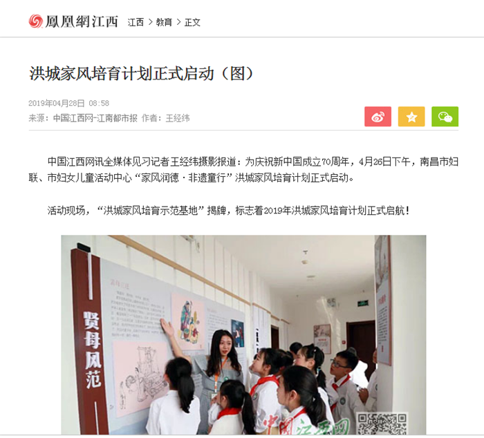 《中国妇女报》等多家媒体共同报道”家风润德·非遗童行”洪城家风培育计划启动活动