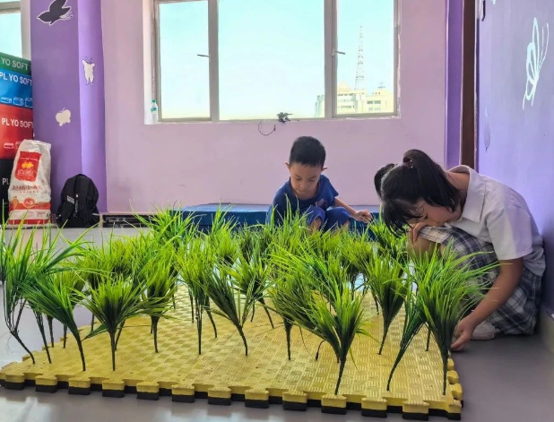 孩子们分成小组,进行接力比赛。他们手持“粮食”秧苗,快速奔跑,躲避“敌人” 击倒,保卫祖国的领土和来回不易的“粮食”。这个游戏不仅锻炼了孩子们的奔跑速度和反应能力,还培养了他们的团队合作精神和爱国情怀。