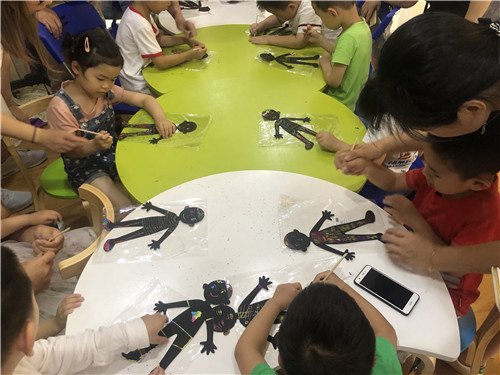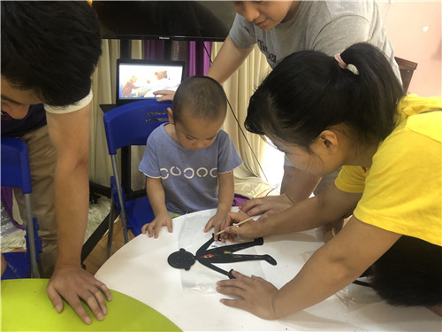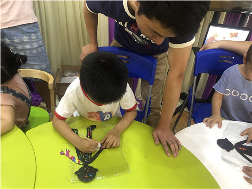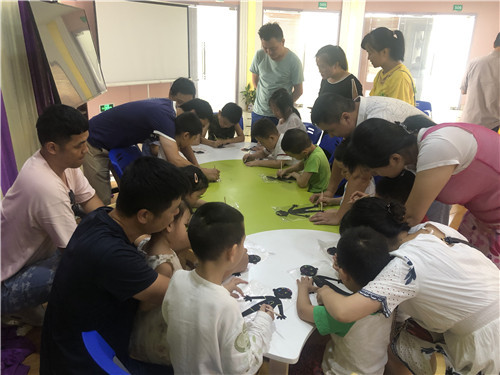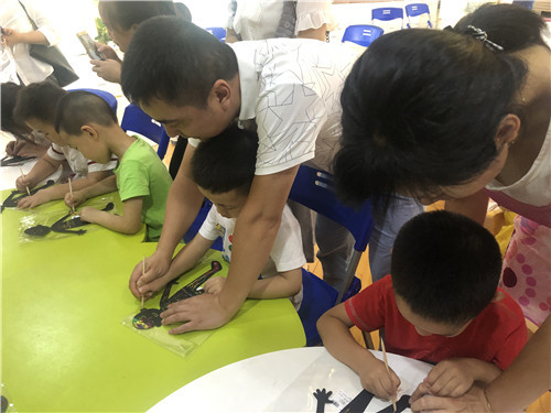 爸爸们耐心指导,父子共同努力让作品完成的更完美