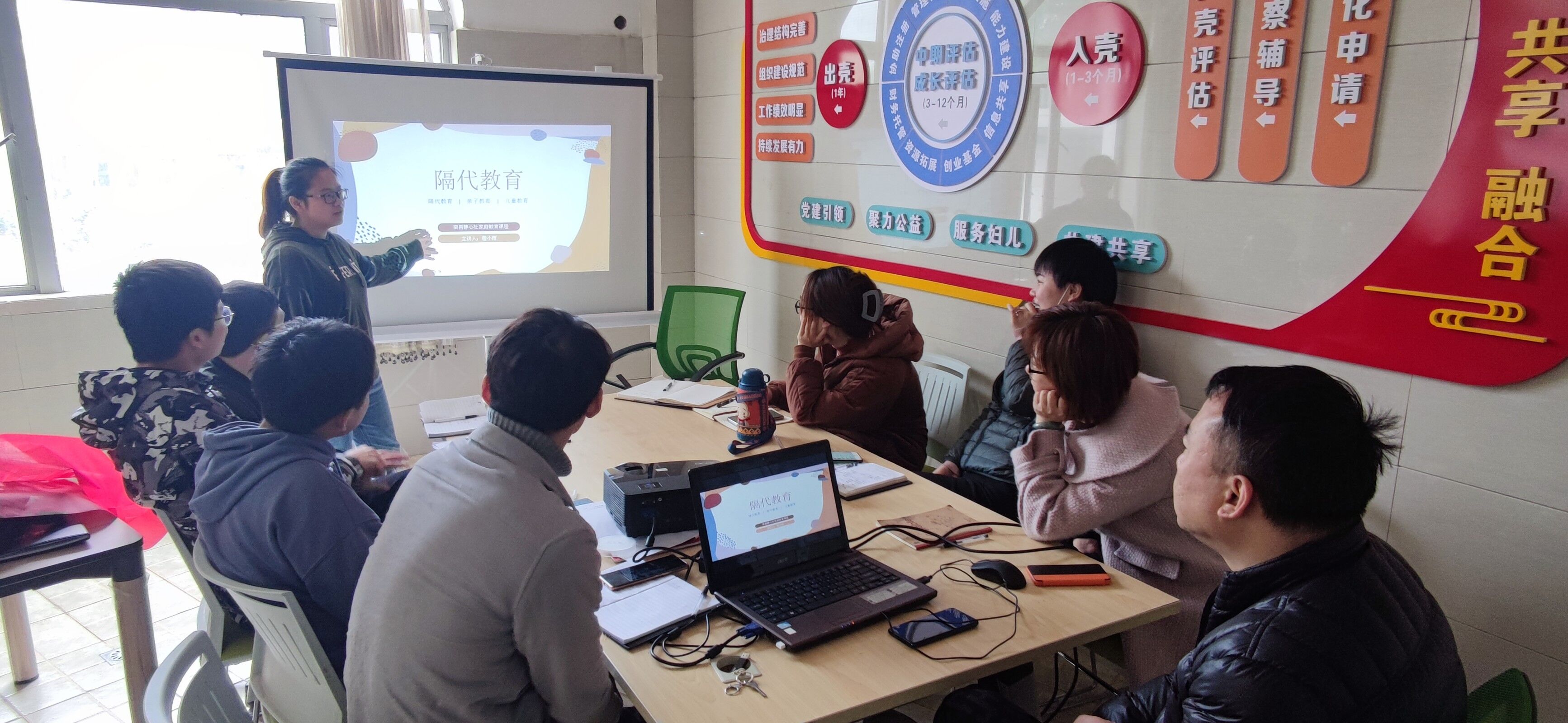 为增强社会组织专业性,推进社会组织在参与社会服务中配合开展妇联品牌工作的积极作用。4月6日下午,园内开展家庭教育导师培训会,参与人数10人。家庭教育讲师展示以家庭教育为主题的体系课程,此次培训会以体系课程中“隔代教育”的部分进行培训,通过对隔代教育的起因、隔代教育的优劣以及如何看待隔代教育三方面进行了交流培训。