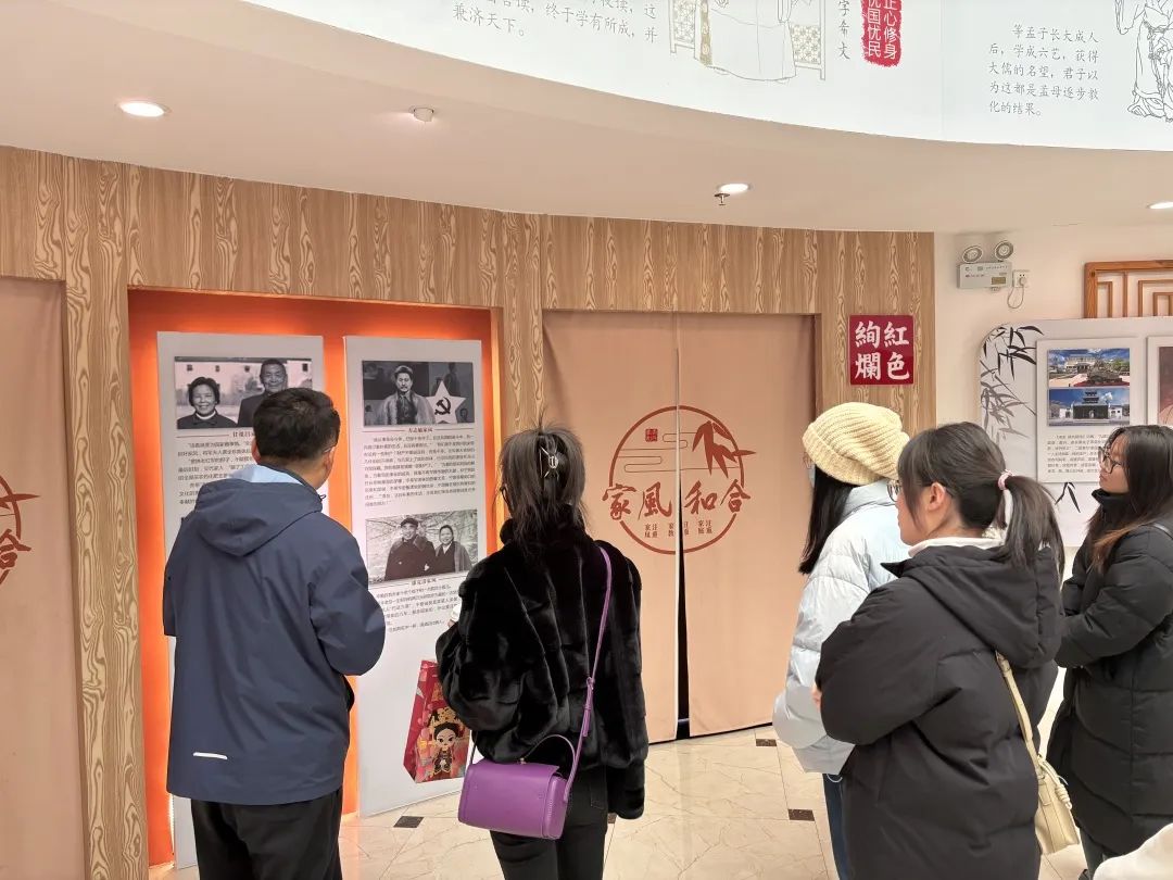 在家风馆,一行人依次参观了“家风之论”“家风之源”“家风之样”“家风之兴”四大篇章。大家认真观看展览、耐心聆听讲解,在一幅幅历史照片、一条条家训家规前驻足端详,不时交流讨论,在潜移默化中陶冶情操、接受浸润。